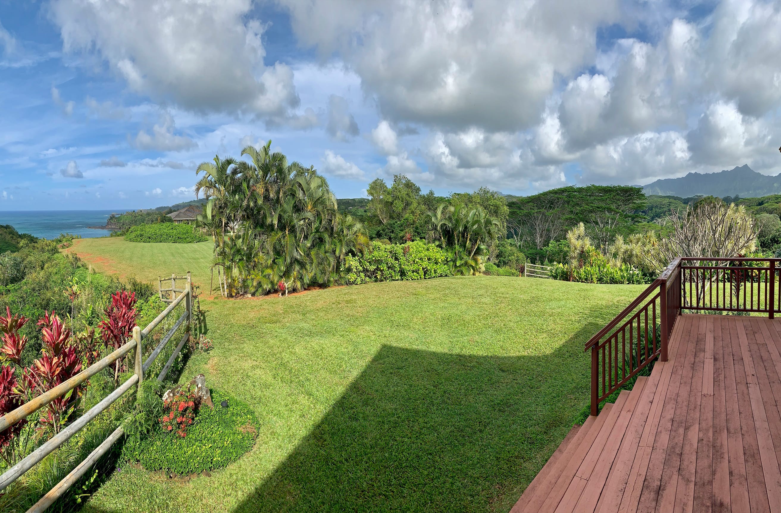 Perfectly perched above the Pacific, this 4BD / 3 BA home offers stunning ocean and mountain views. After coming through the private gate onto the 3.68 acre estate, the driveway climbs past an exotic fruit orchard to the private 2-story home atop the hill. With over 3000 sqft. of living space, every room in the home was designed to take in the panoramic views of Kalihiwai Bay, the Kilauea Point Lighthouse, the Namahana mountain range, and more. The home is almost entirely wrapped in decking, allowing even more opportunity to take in the lush greenery, long views, and blue waters. The spacious and bright residence offers great potential to upgrade and customize as your own.