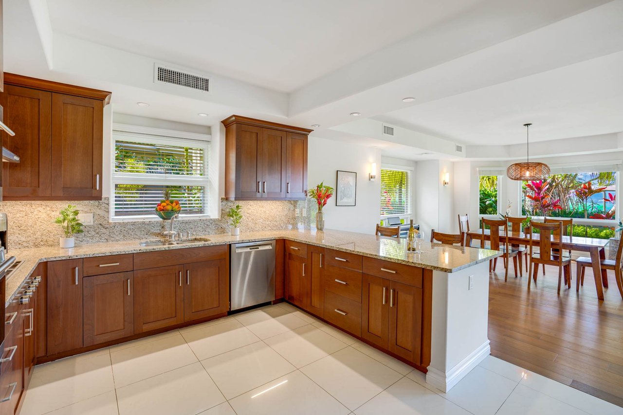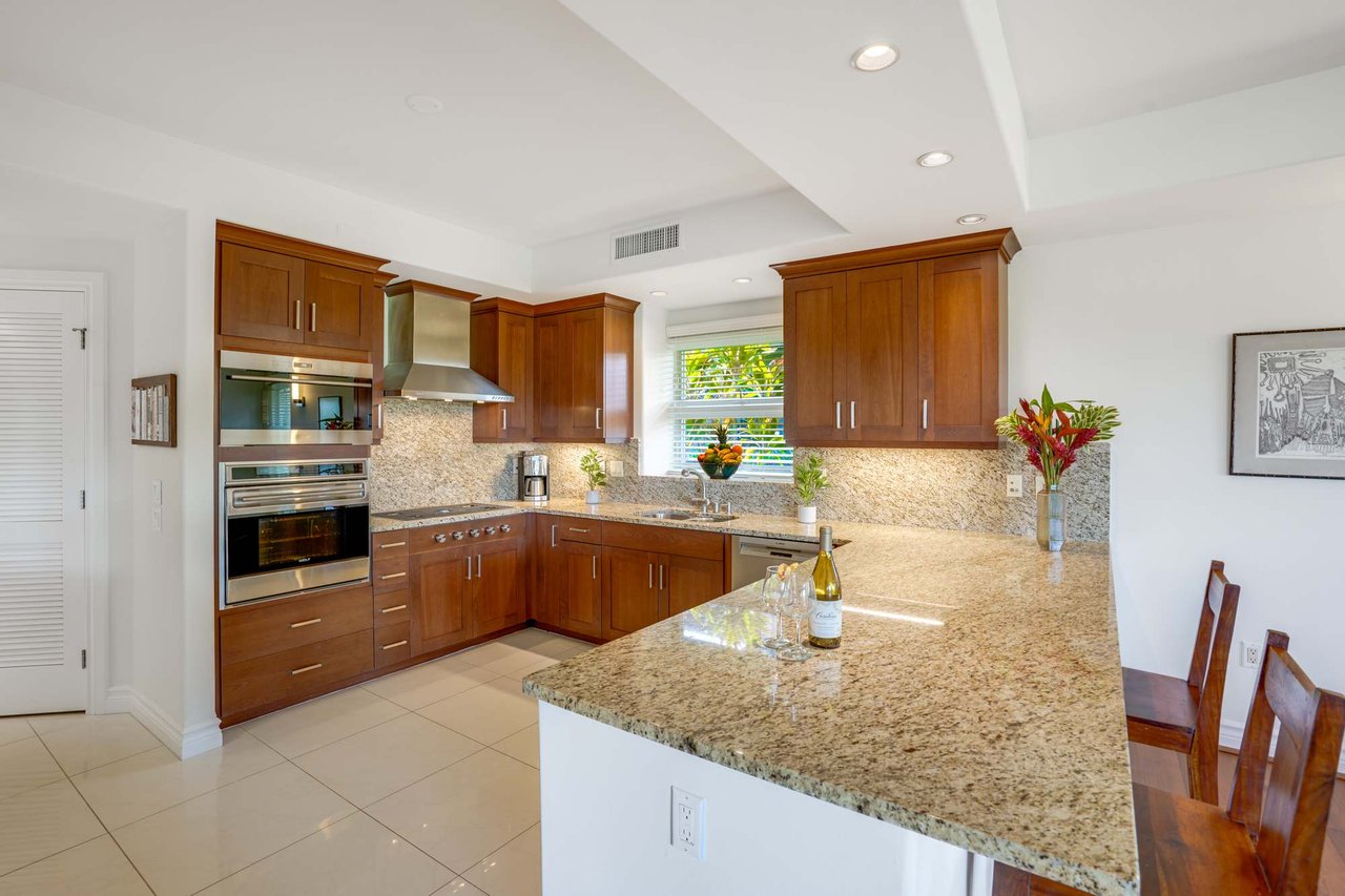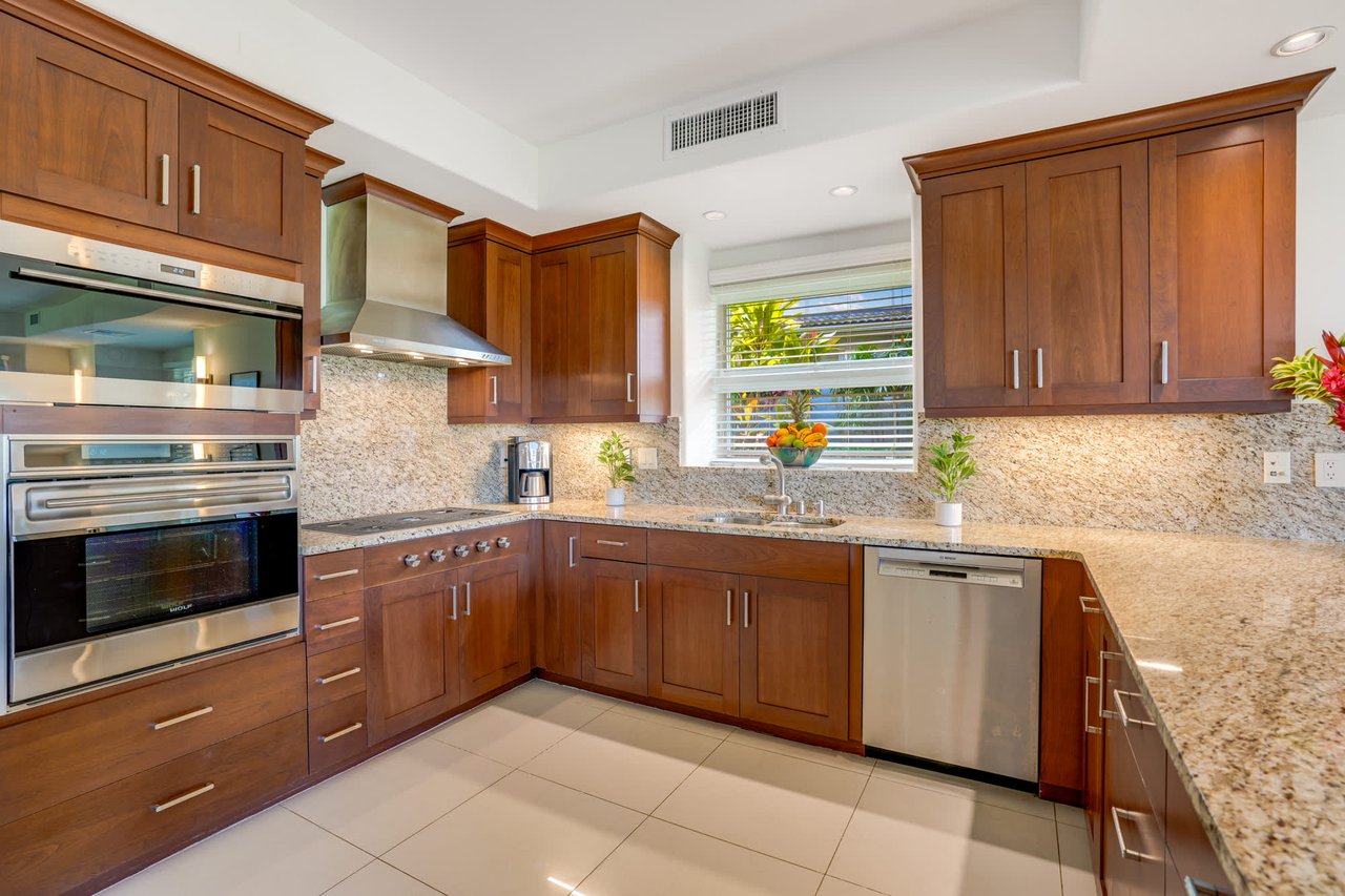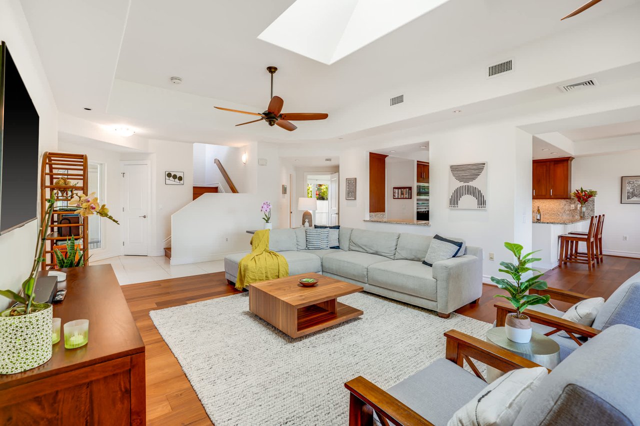 Ka’iulani 54 is a thoughtfully designed and executed 3 bedroom 3 bath 2,475 sqft townhome with an attached 450 sqft two-car garage that feels and lives like a single family residence. If you are not familiar with Ka'iulani, they feature a roomy living area, air conditioning throughout, a spacious kitchen with Sub-Zero and Wolf built-in stainless-steel appliances, Aristocratic cabinetry and slab granite counters. Kaiulani 54 features a gas cooktop, Teak hardwood flooring, custom closet systems, updated fans and lights and a fresh coat of interior paint. The three bedrooms are generous and the three bathrooms sumptuous, a separate laundry room with sink and storage is a bonus.