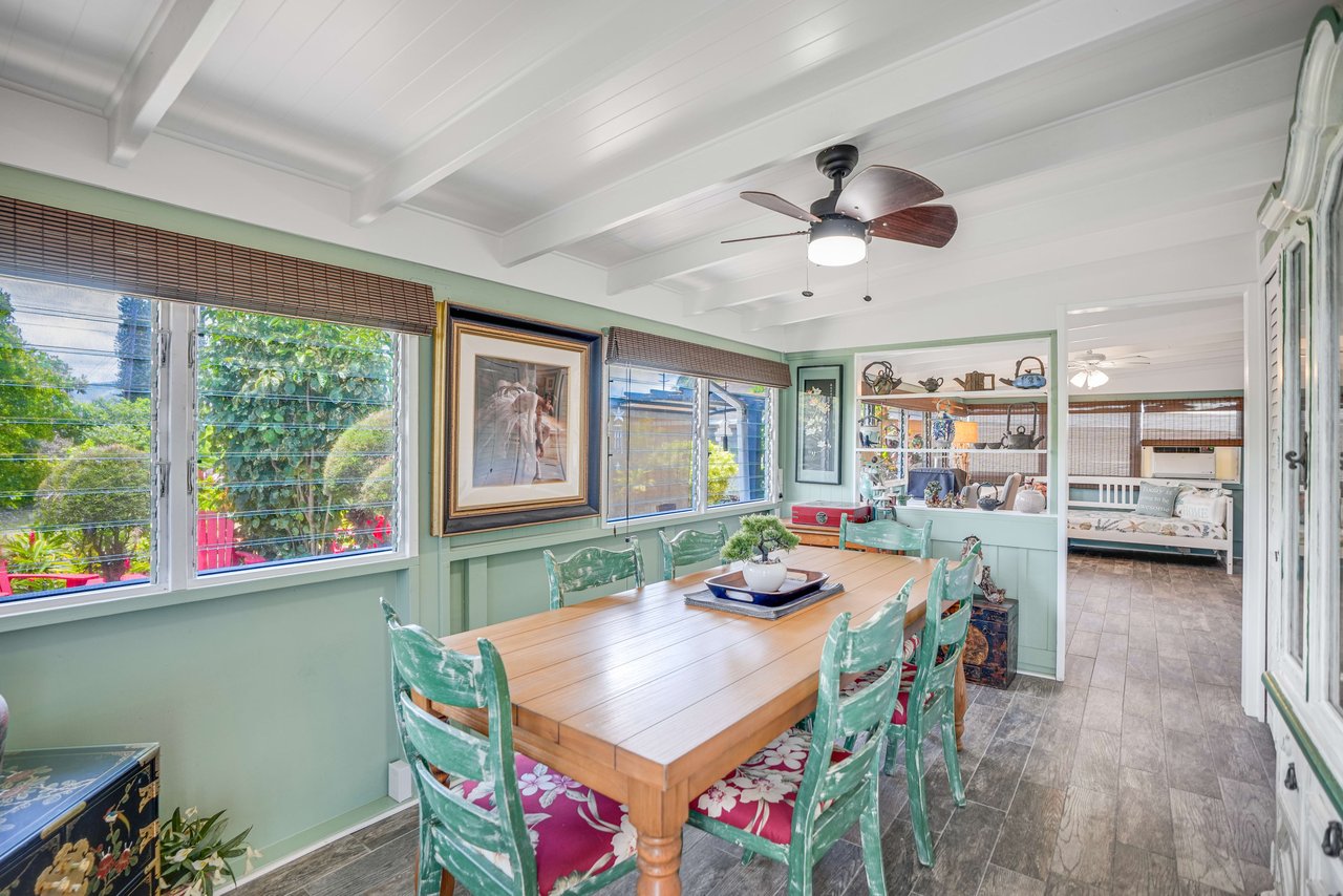 Idyllic Kauai plantation style residence conveniently located a block to sandy Fuji Beach (named after Dr. Fuji, a prominent local physician aka Baby Beach) and the popular Ka Ala Hele Makalae bike & walking path fronting the Coconut Coast.